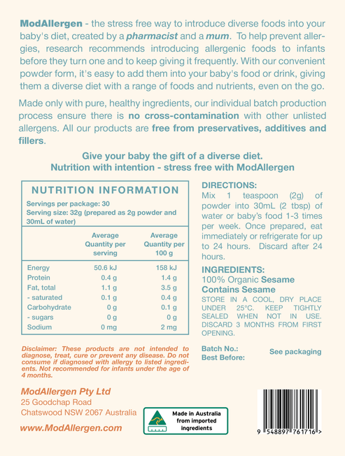 Product may also contain traces of milk, fish, wheat, gluten, eggs, peanuts, Brazil nuts, cashew, hazelnuts, macadamias, pecans, pine nuts, pistachios, walnuts, sesame, crustacean, mollusc, oats, rye, barley, soy and lupin.