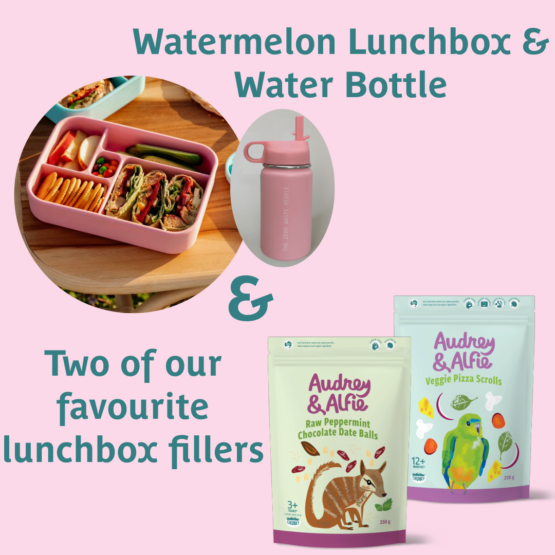Combining our beautiful watermelon lunchbox and water bottle with our fav packable Finger Foods, this limited-edition bundle will be the envy of all your lunchbox-packing and snack-eating friends.